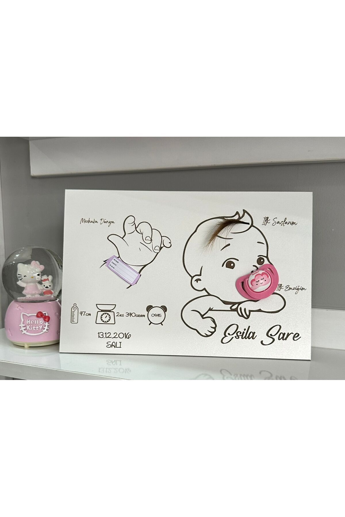 Ste Desing Kişiye Özel Bebeğimin İlk Saçı, Hastane Bilekliği, Doğum Bilgi Anı Panosu, Yeni Doğan Çerçeve