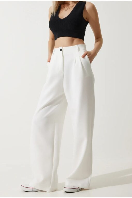 Stil Sepeti Kadın Beyaz Çift Pileli Yüksek Bel Palazzo Pantolon TL-100080074 en ucuz fiyata kozmetikara.com sitemizden sipariş verebilirsiniz.