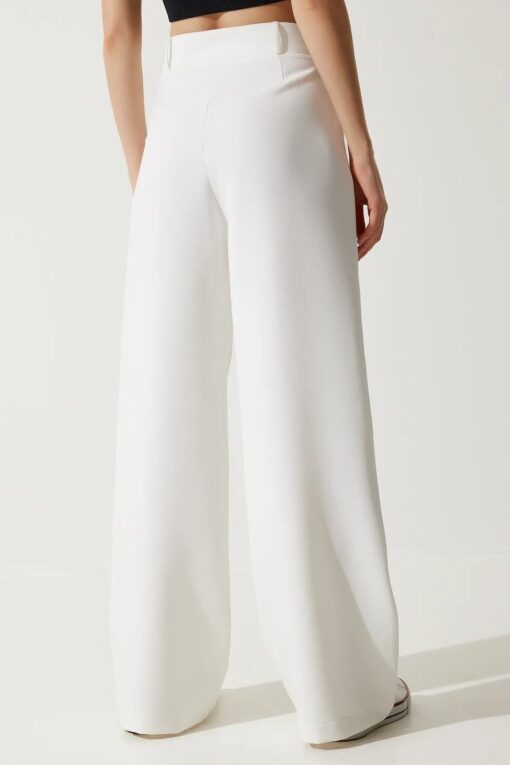 Stil Sepeti Kadın Beyaz Çift Pileli Yüksek Bel Palazzo Pantolon TL-100080074