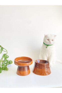 stilinbu Seramik Kedi Ve Köpek Mama Su Kabı (KAHVERENGİ & COLORFUL MOON KAHVERENGİ- GÖKKUŞAĞI- 2’Lİ)