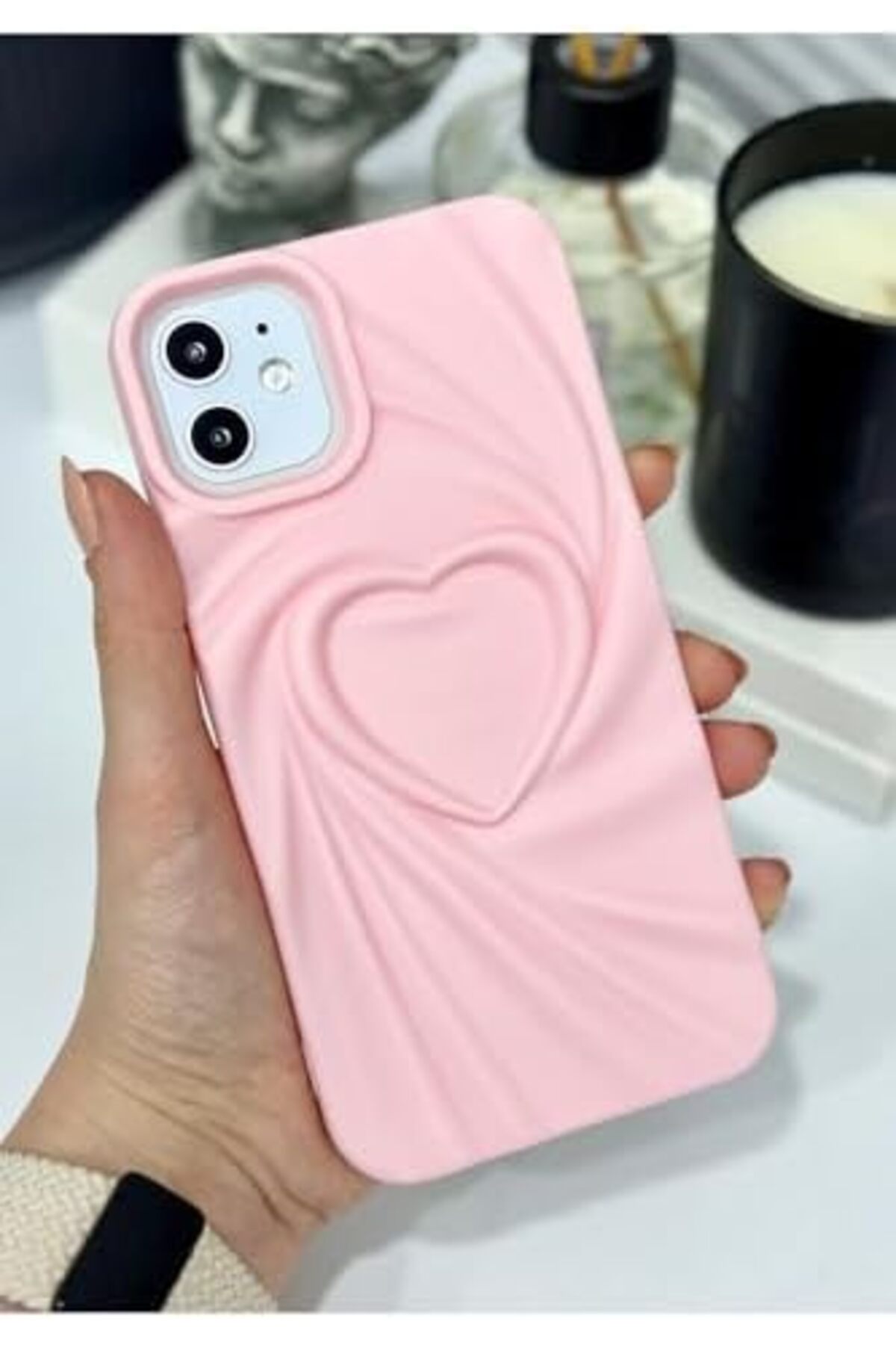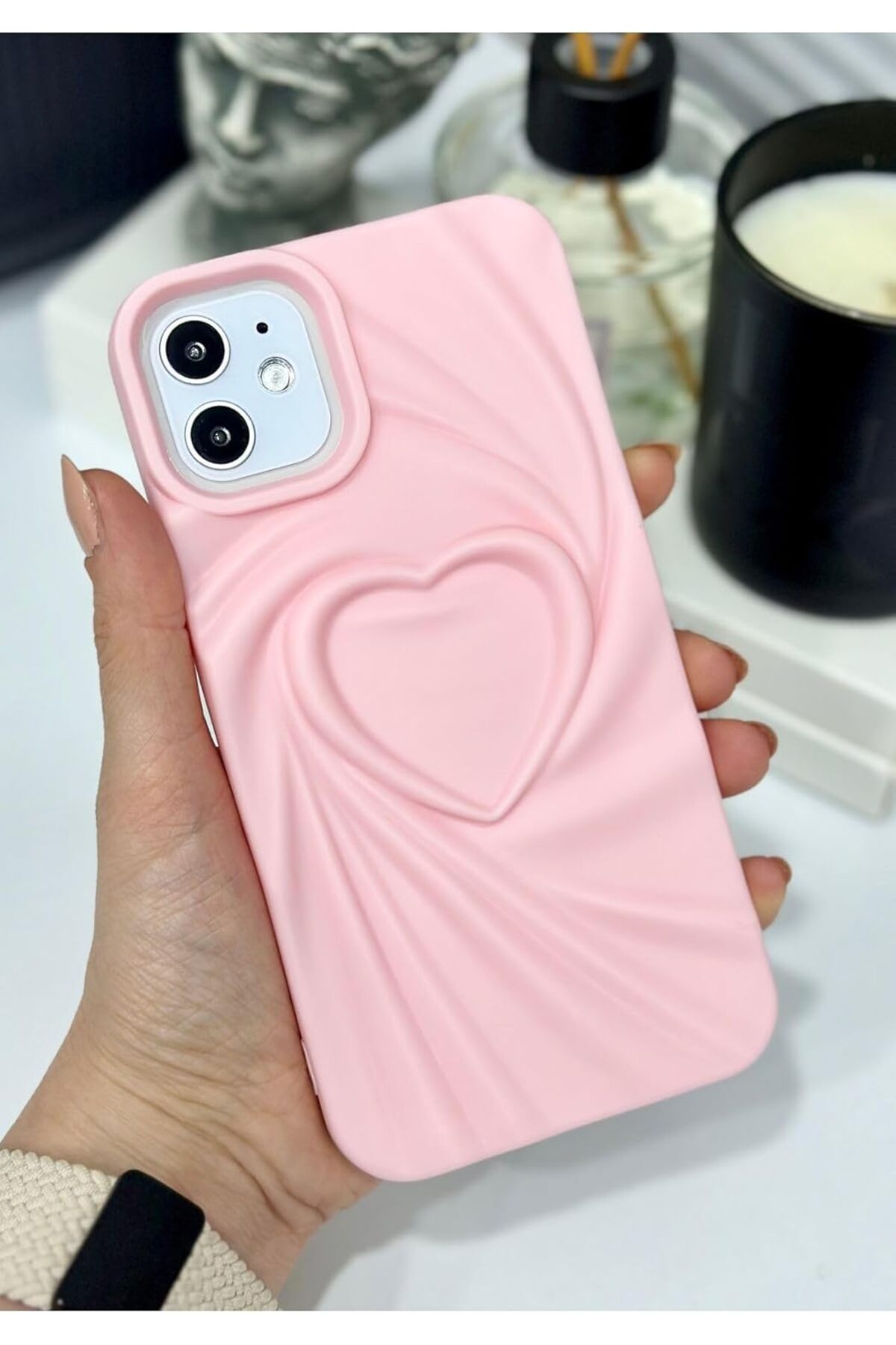 STOREMAX Aksesuar 11 ile Uyumlu 3D Mat Kalp Kabartma Desenli Darbe Önleyici Silikon Kılıf 1154848
