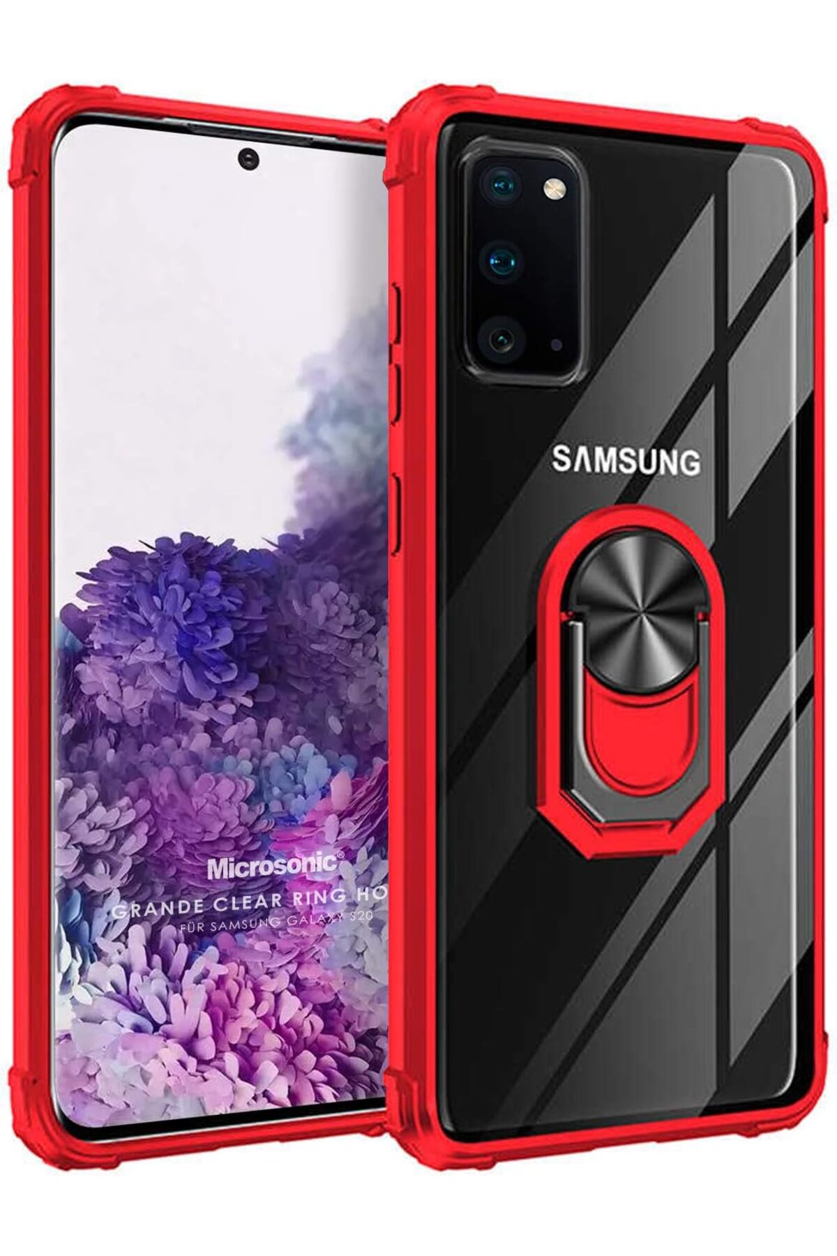 STOREMAX S20 için Kılıf Grande Clear Ring Holder Kırmızı [ S20 ile Uyumlu Kılıf – Kırmızı] 1171935