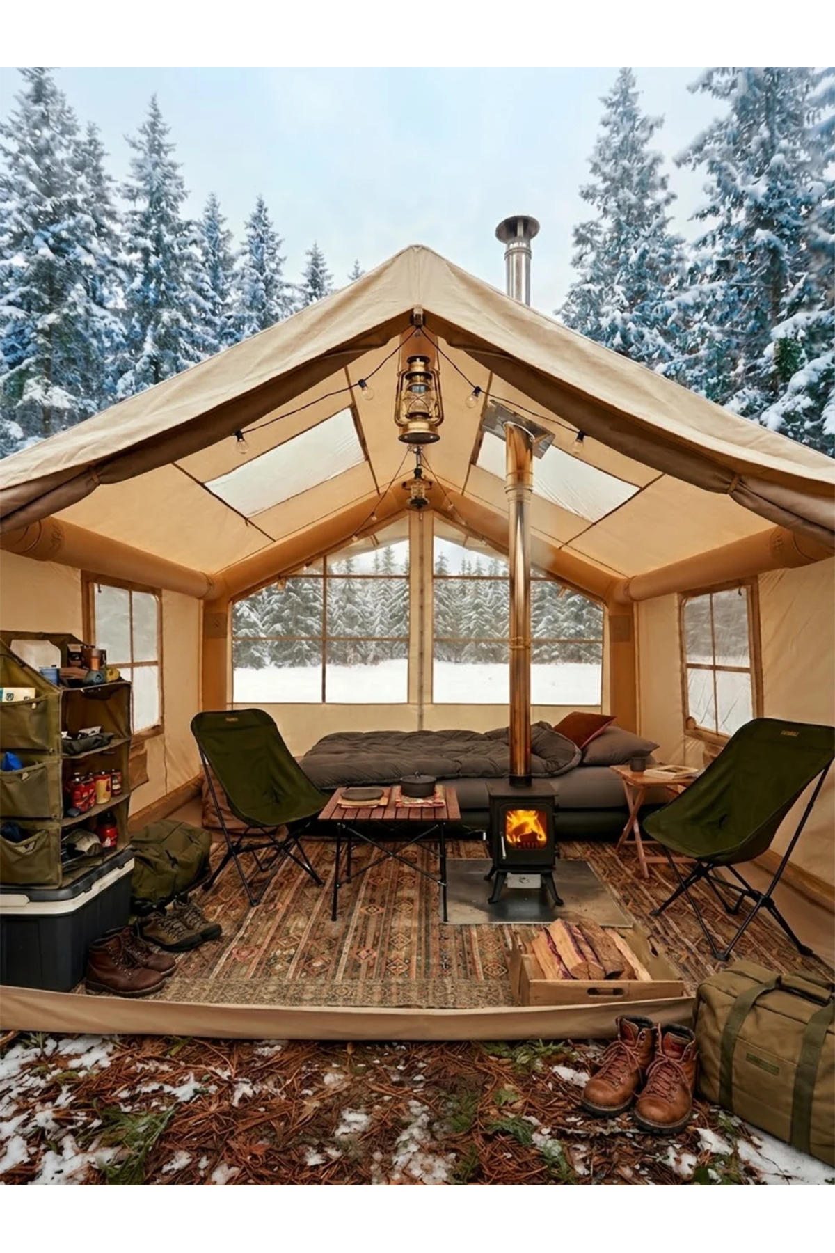 Streak Şişme Kamp Çadırı 5 Mevsim 300x250x210 cm 4-6 Kişilik Çadır Pompalı Baca Çıkışlı Tavan Manzaralı