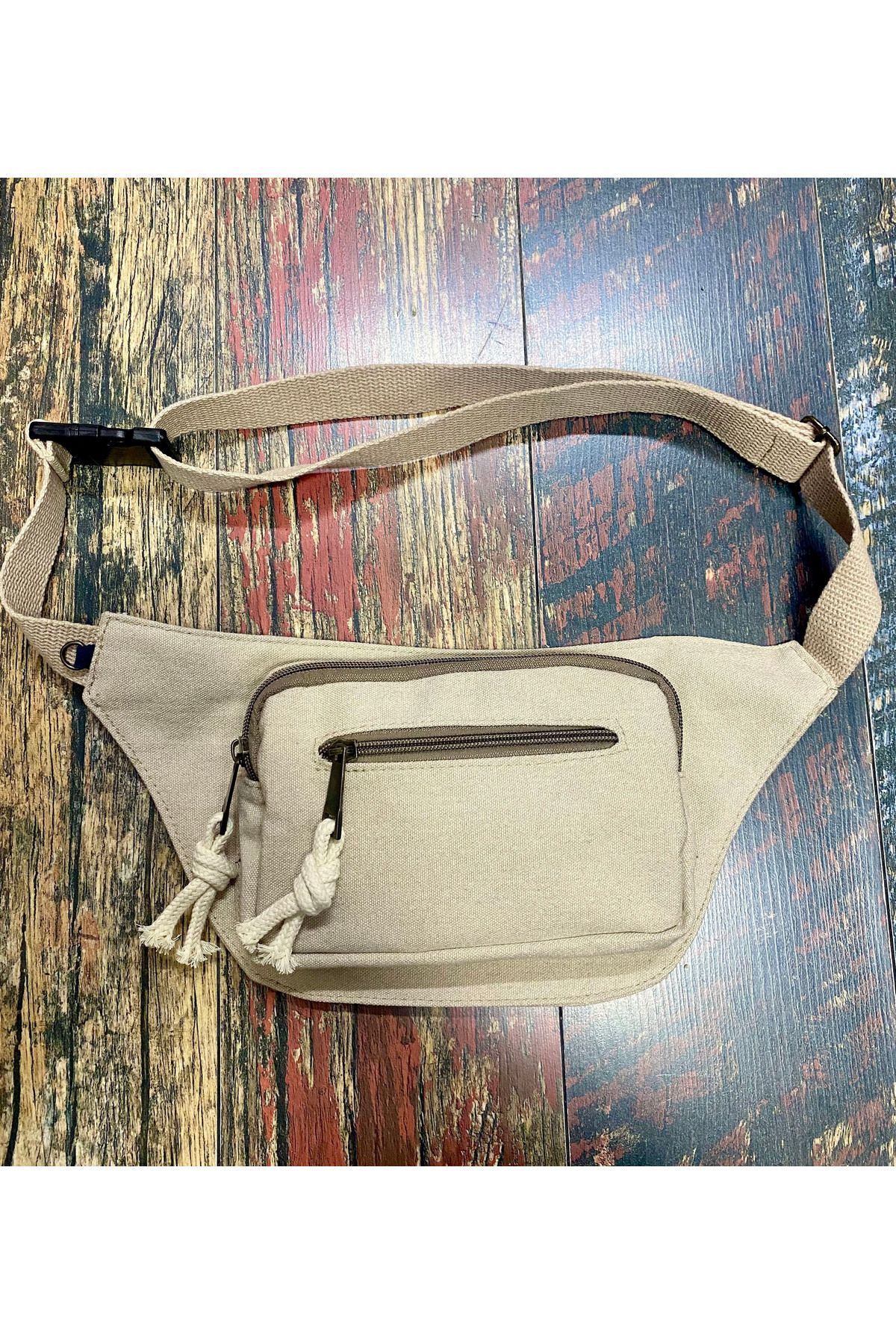 Günlük kullanım için ideal olan krem kanvas bel çantası, rahatlığı ve sade şıklığı bir arada sunar.