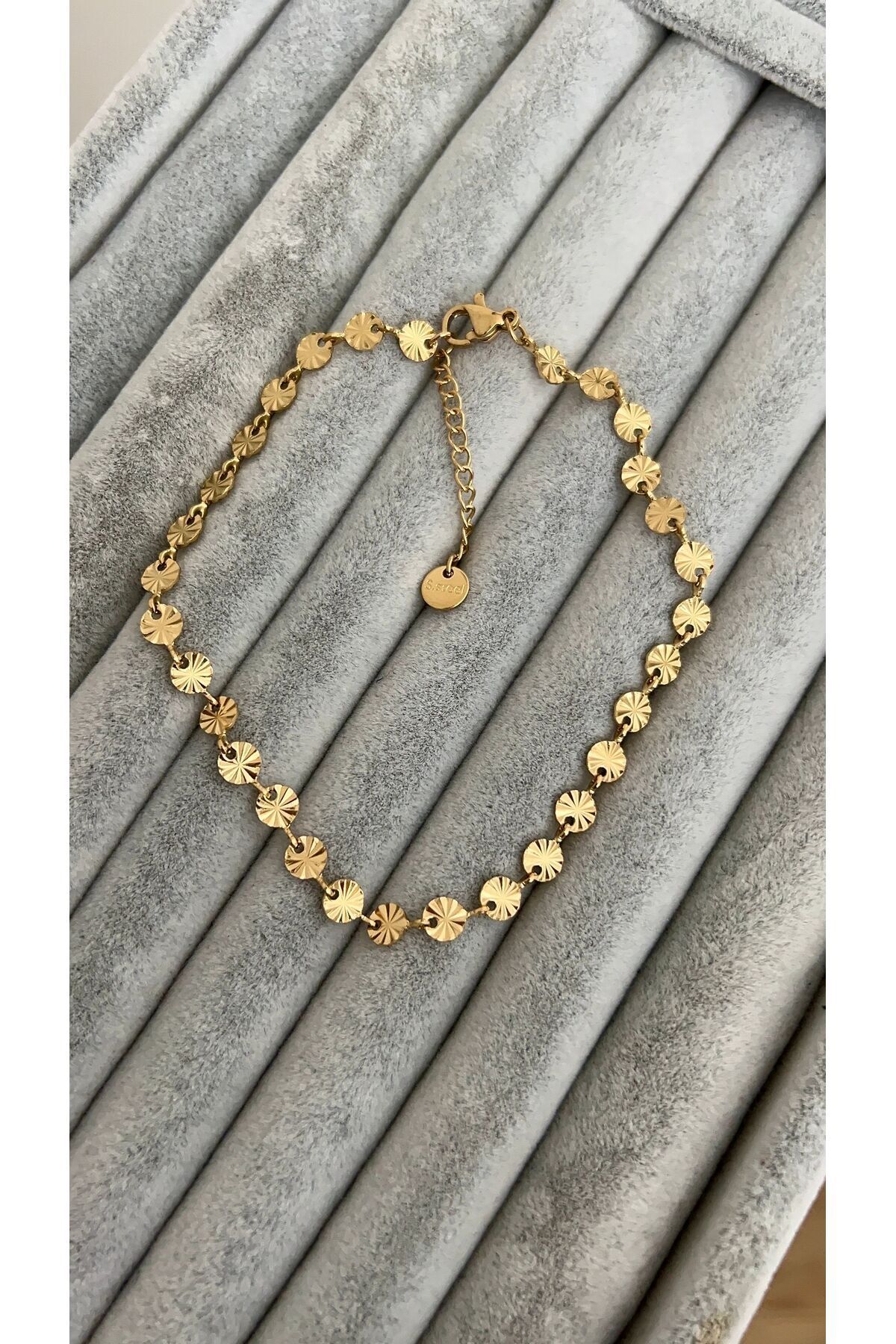 SU PERİSİ TAKI BİJUTERİ Çelik Gold Kesme Detaylı Pul Halhal