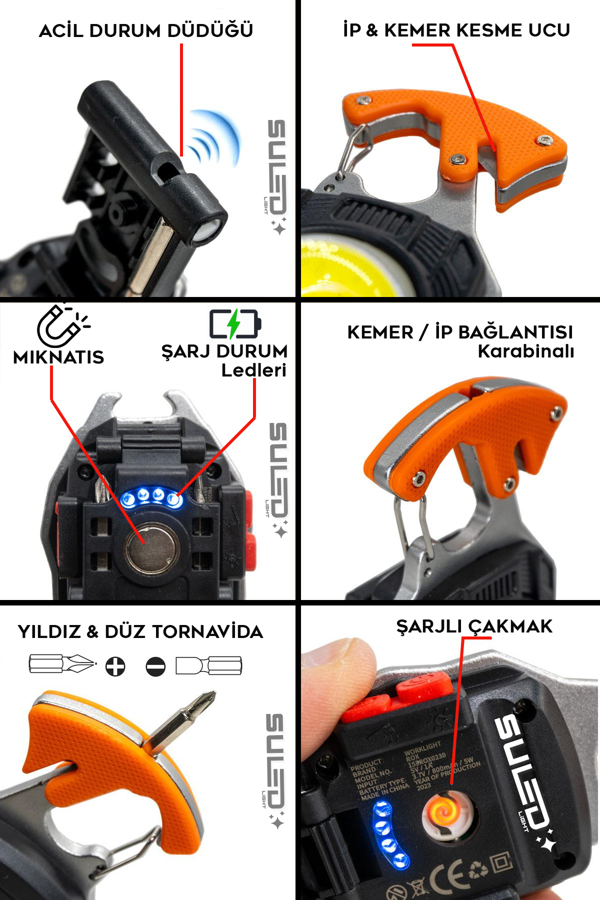 SULED KAMP Plus Multi Fonksiyonel Fener Çok Amaçlı Şarjlı Led Işık – Acil Durum Kit