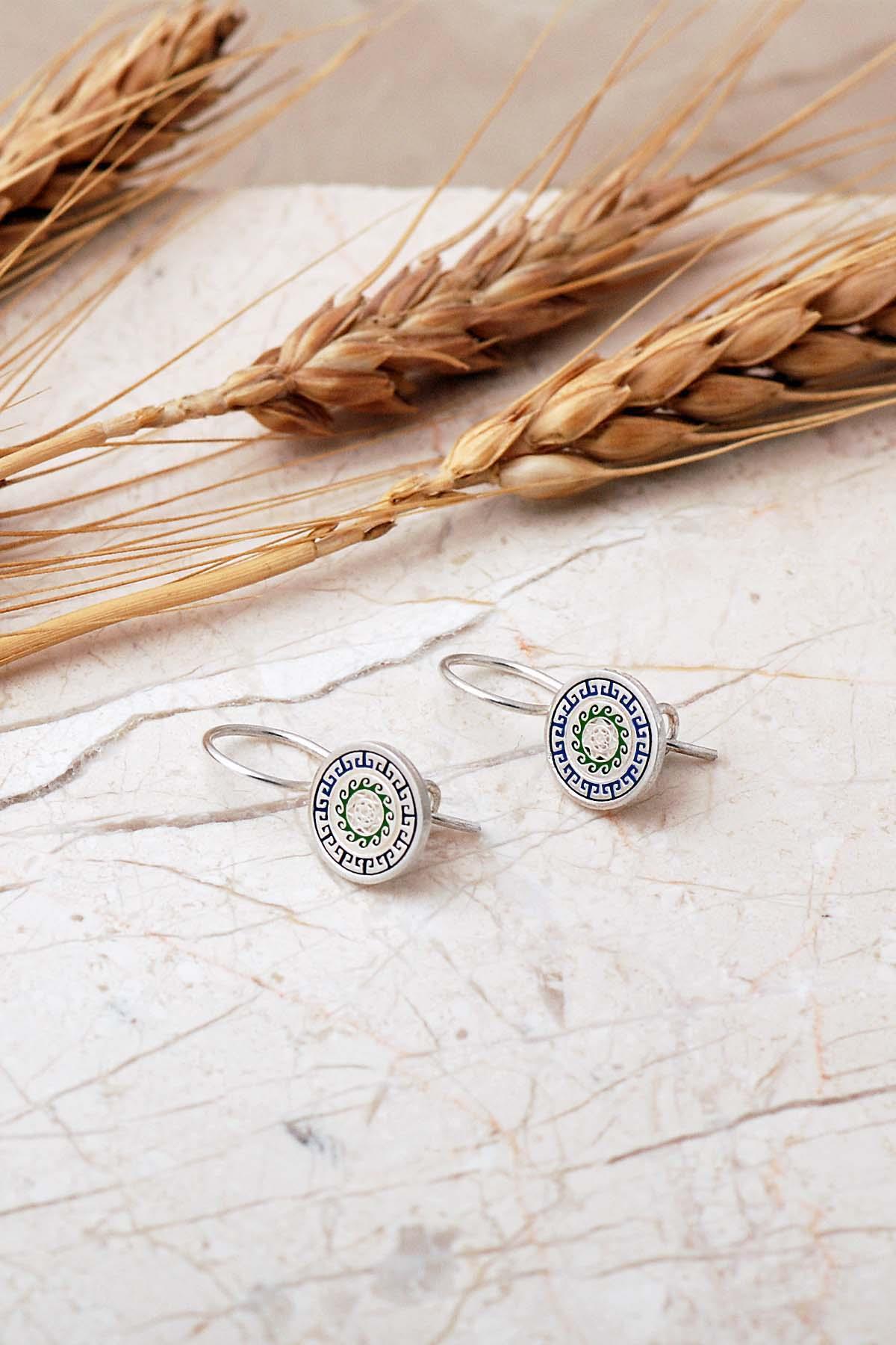 Sümer Telkari Anadolu Motifli Mineli Elişi Gümüş Küpe 5915