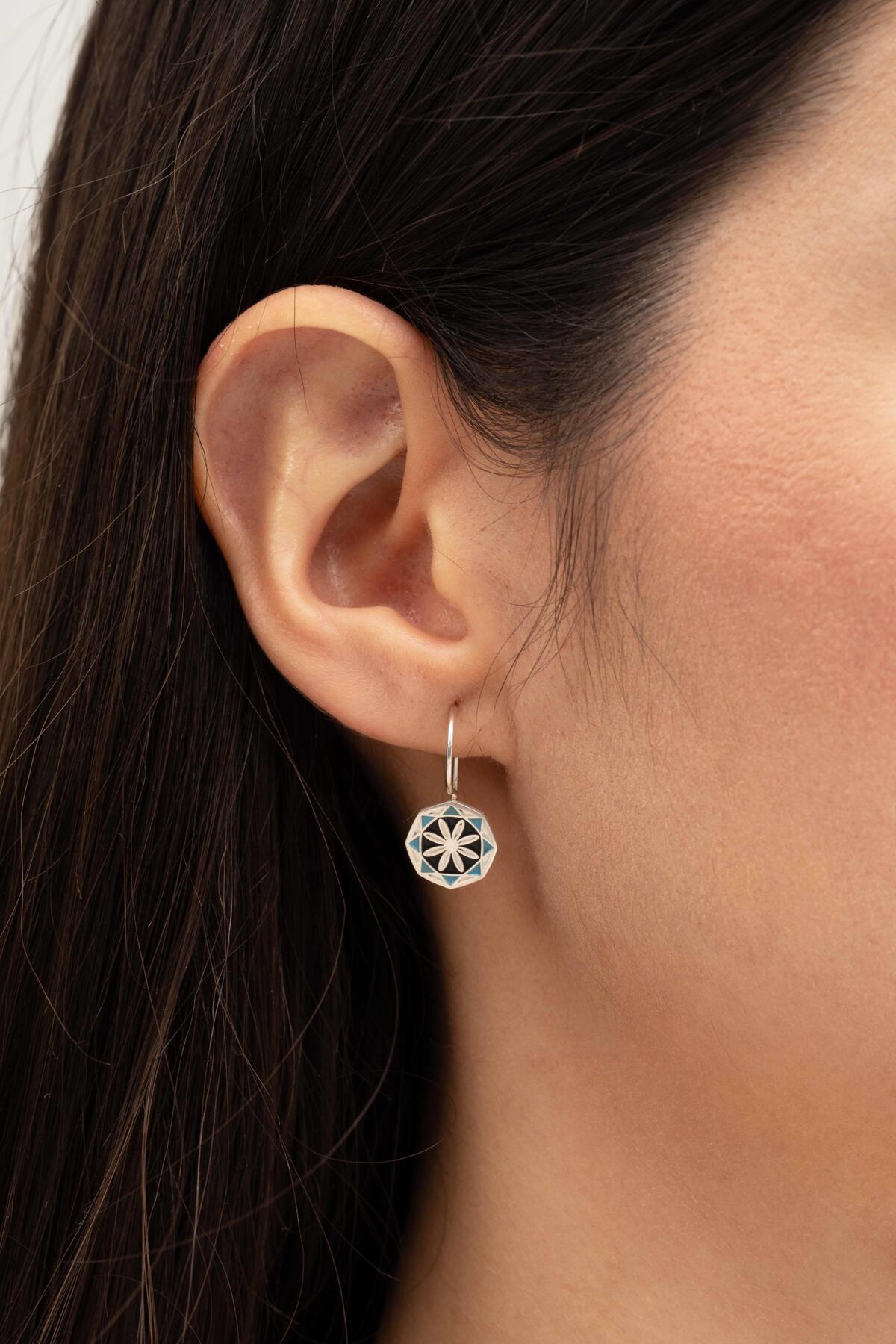 Sümer Telkari Anadolu Motifli Mineli Elişi Gümüş Küpe 5916