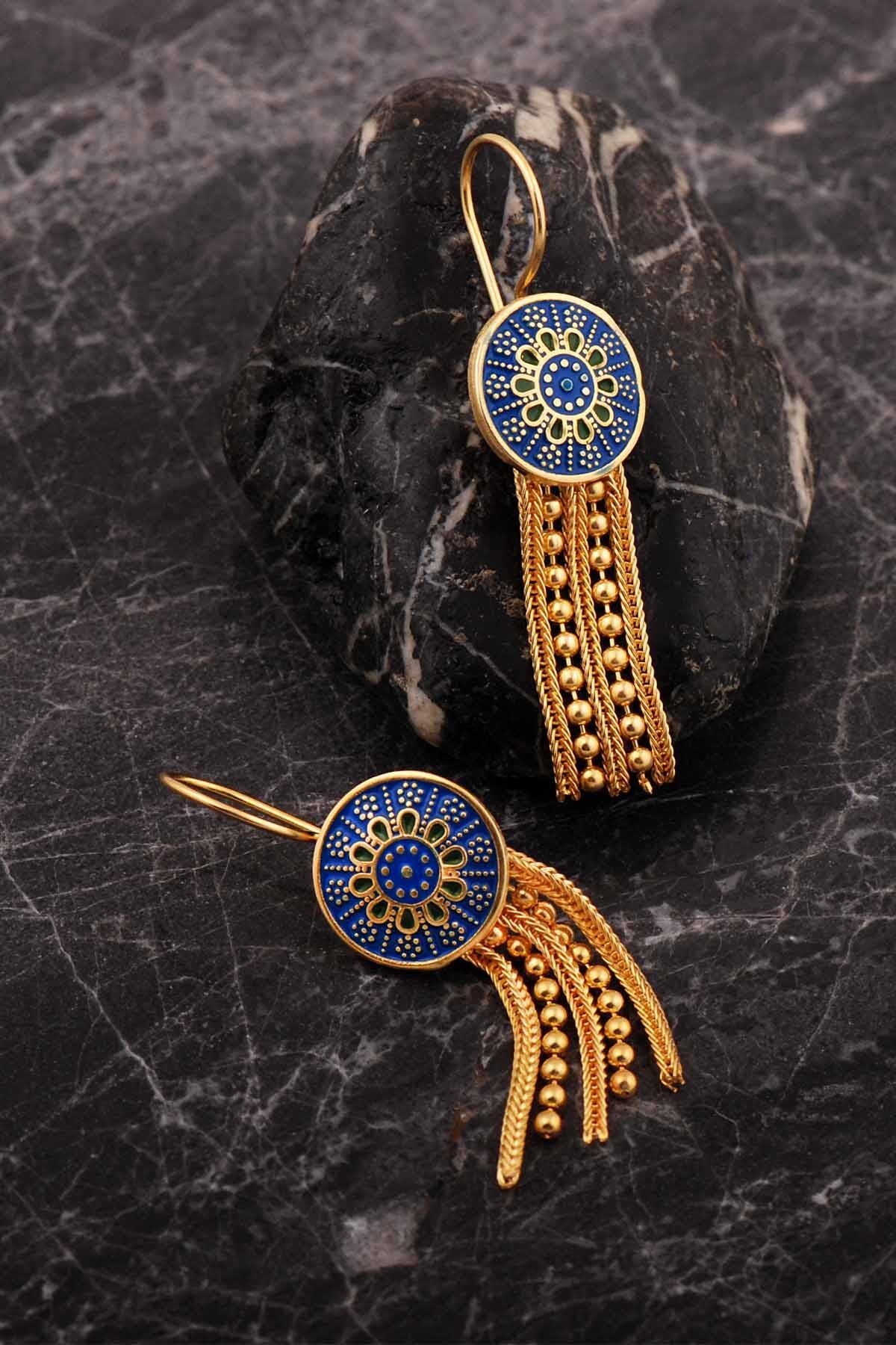 Sümer Telkari Mardin Güneşi Altın Kaplama Mineli Hasır 925 Ayar Gümüş Küpe 7254