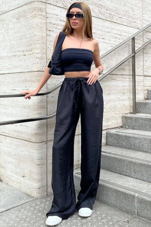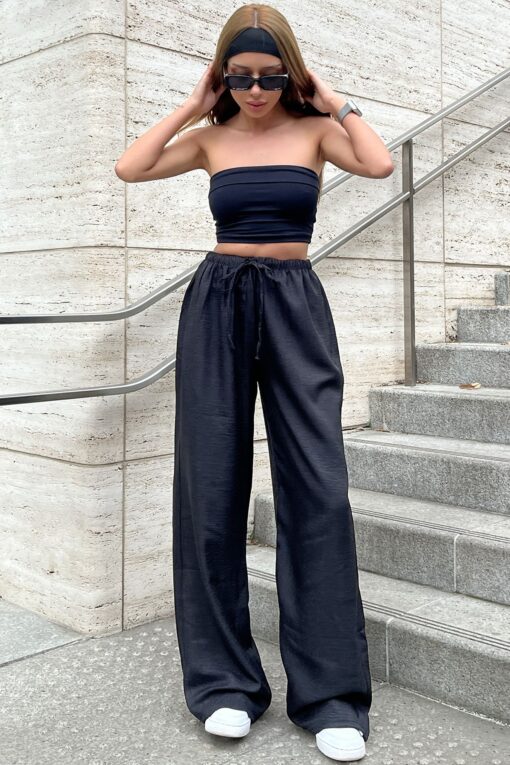Ana Sayfa » kozmetikara.com » Giyim » Alt Giyim » Pantolon » Sun Victoria Kadın Siyah Keten Karışımlı Yüksek Bel Bol Paça Palazzo Pantolon