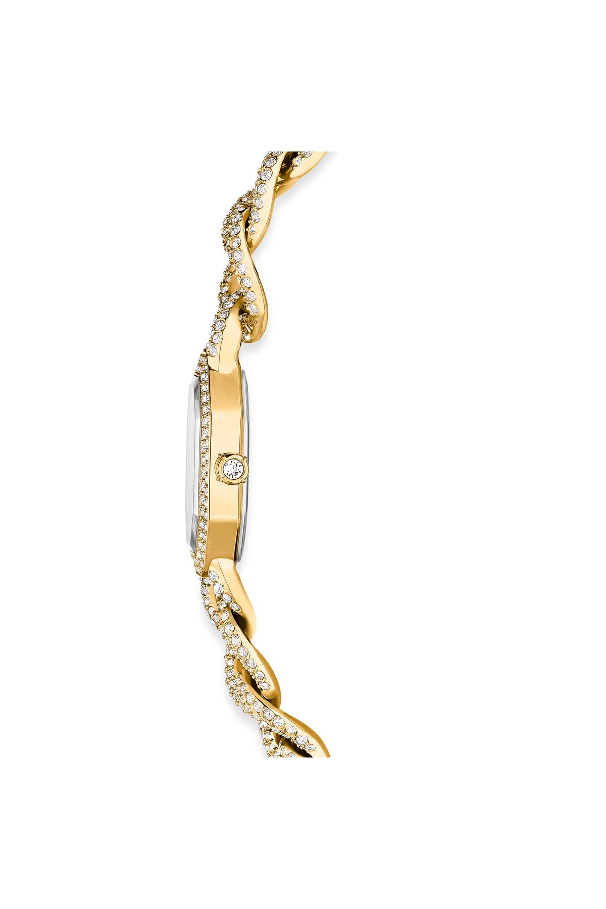 Saat, 530 adet kristalle süslenen ayarlanabilir gurme bir zincirle bileğinizi sararken tekli kristal ise kurma koluna yerleştirilmiştir.