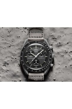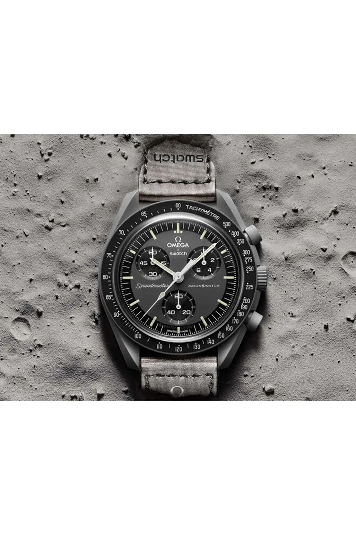 Tüm görünümlerde OMEGA X SWATCH markası, ikonik Speedmaster logosu ve yeni MoonSwatch logosu bulunur