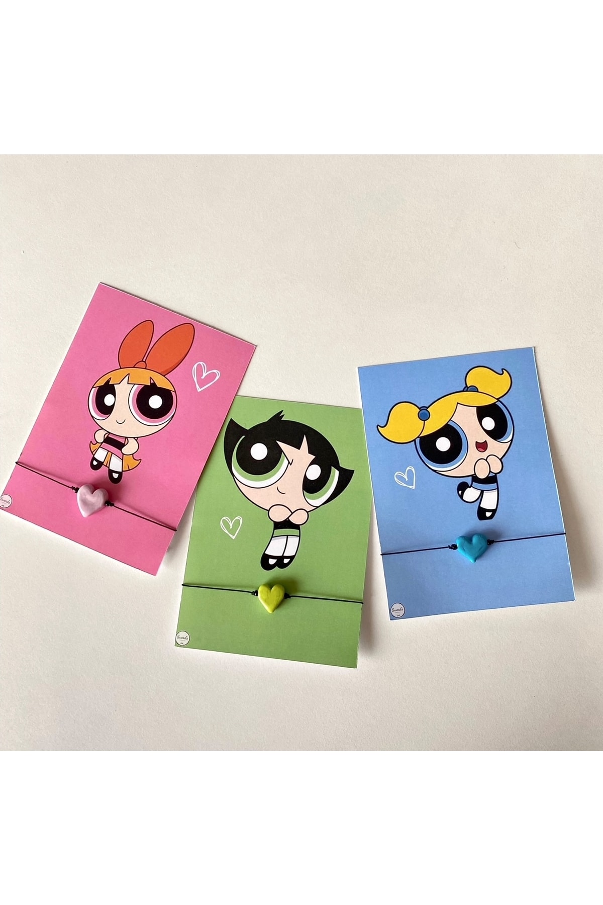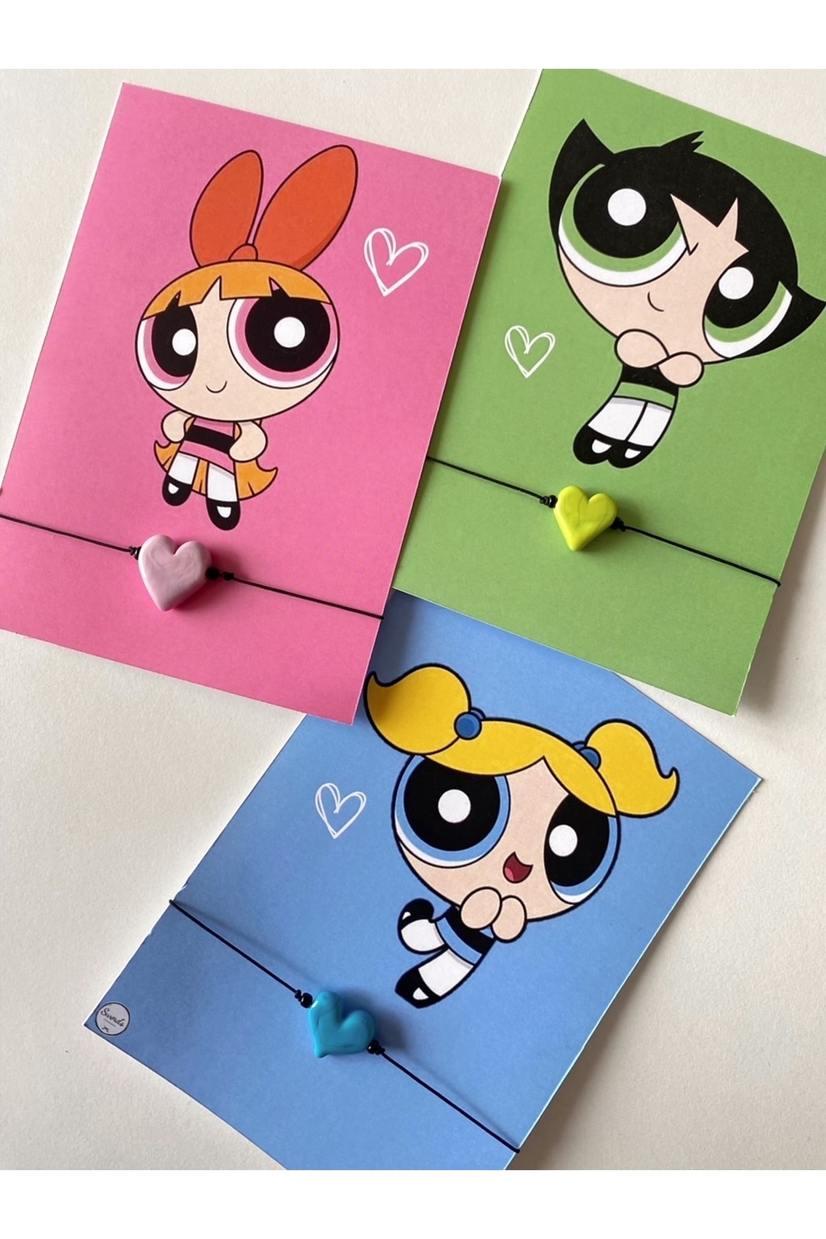SWORDS CONCEPT Üçlü Murano Kalp Arkadaşlık Bilekliği Power Puff Girl / Hediyelik