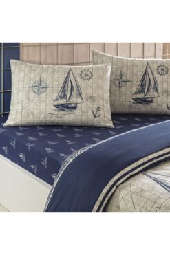 Taç Muna Ranforce Çift Kişilik Nevresim Takımı Lacivert