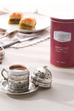 Tahmis kahvesi Osmanlı Kahvesi (Sultanın İksiri) 250 gram Teneke – 1635’ten beri Osmanlı Kahvesi nin en eski mekanlarından olan Tahmis Kahvesi olarak kurulduğumuz 1635’ten bu yana kahve müdavimlerine eşsiz Osmanlı Kahvesi keyfini sunuyoruz