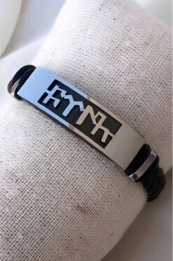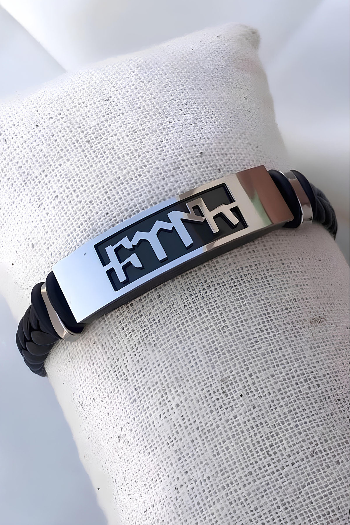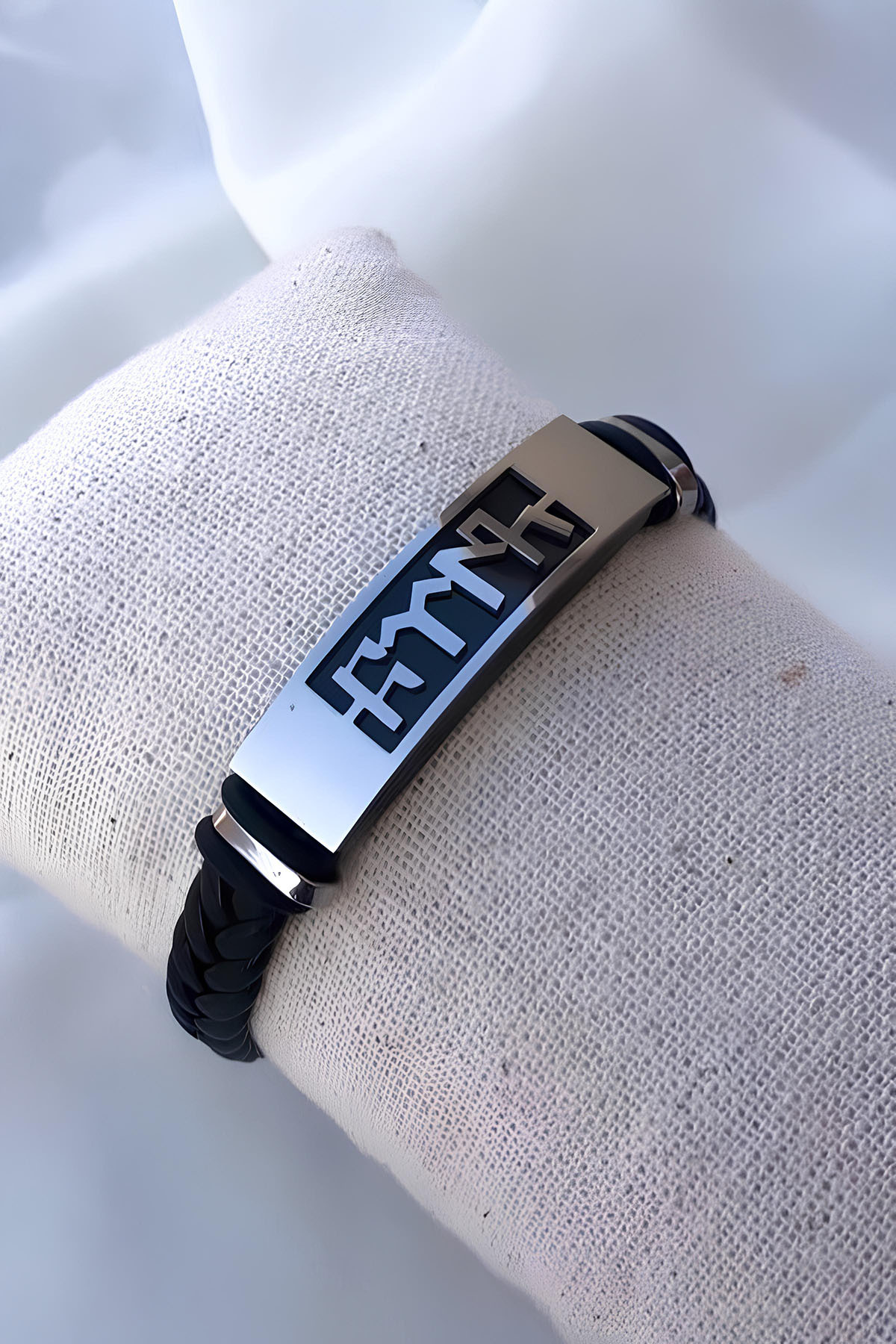 Takı Dükkanı Göktürkçe Türk Yazılı Deri Kordonlu Erkek Çelik Bileklik scb24
