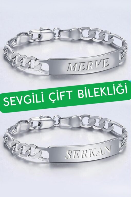 Takı Dükkanı Kişiye Özel İsim Yazılı 2’li Sevgili Çift Bilekliği Çelik Bileklik scb41