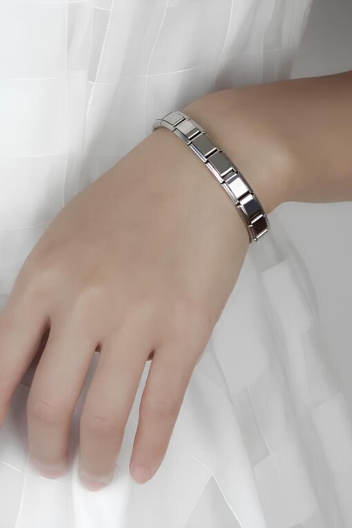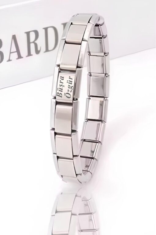 Takı Dükkanı Kişiye Özel İsim Yazılı İtalyan Charm 21cm Çelik Bileklik scb62