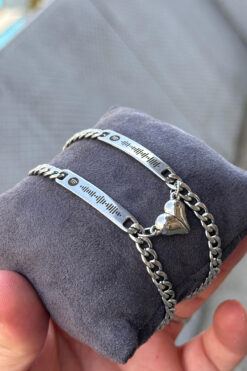 Takı Dükkanı Sevgili Arkadaş Spotify Kodlu Mıknatıslı Kalpli Unisex Çelik Bileklik Çifti scb74