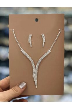 TakıConcept Su Yolu Gelin Seti Kristal Taşlı Abiye Gelin Küpe Kolye Set