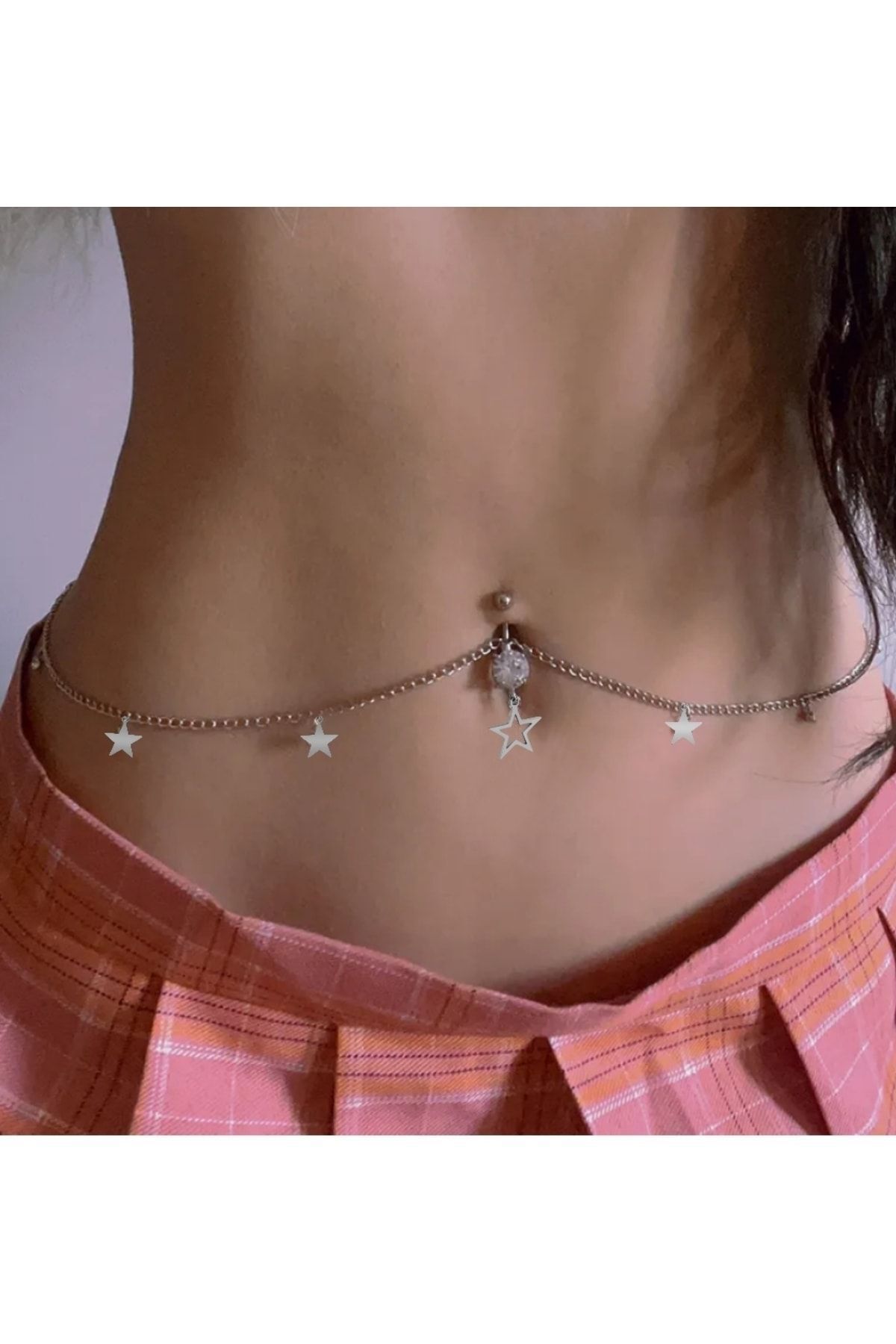 TakıConcept Yıldız Detaylı Göbek Piercing Bel Zinciri, Vücut Aksesuarı