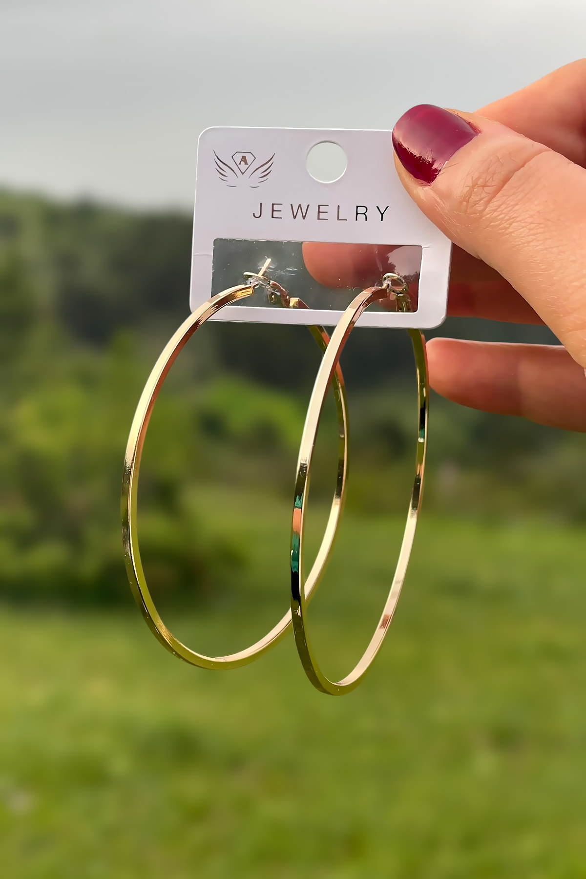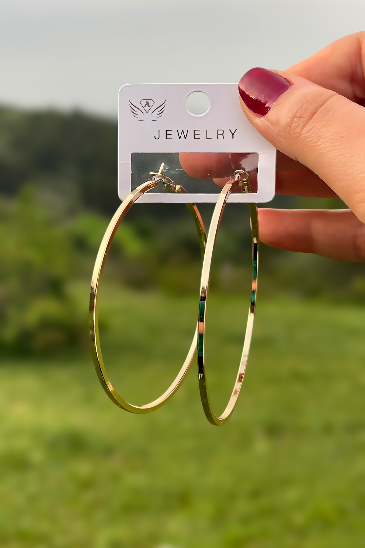 TAKIPORT Düz Kesim Büyük Boy Halka Küpe – Hafif & Gold Parlak Tasarım