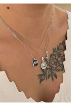 Pelin Aksesuar Siyah Taşlı Kalp Silver Kolye