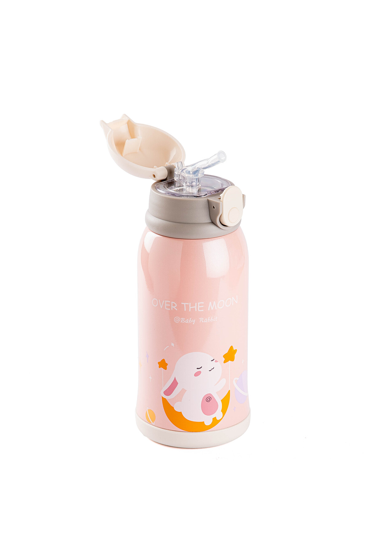 Tantitoni KAKE PEMBE TAVŞAN DESENLİ ÇİFT KAPAKLI ÇOCUK TERMOSU 600ML