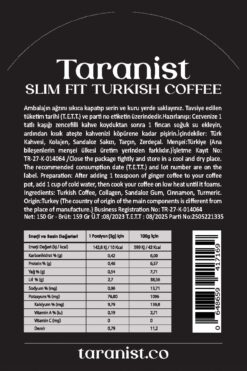Taranist Slim Fit Coffee – Tarçın Zerdeçal Türk Kahvesi- Sandaloz Sakızı Kolajen 150 gr