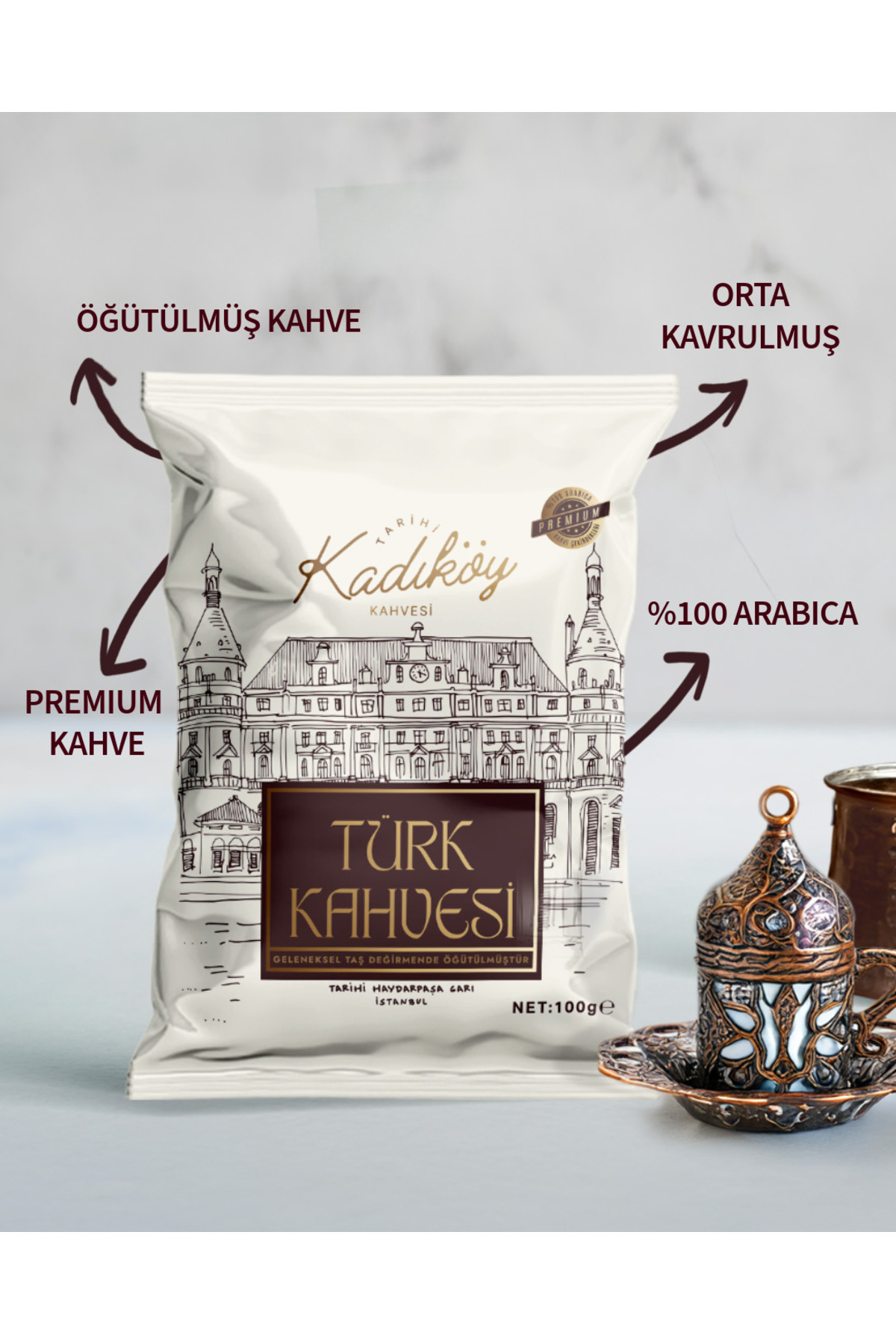 Tarihi Kadıköy Kahvesi Premium Türk Kahvesi Orta Kavrulmuş Taş değirmende Öğütülmüş 100 Gram