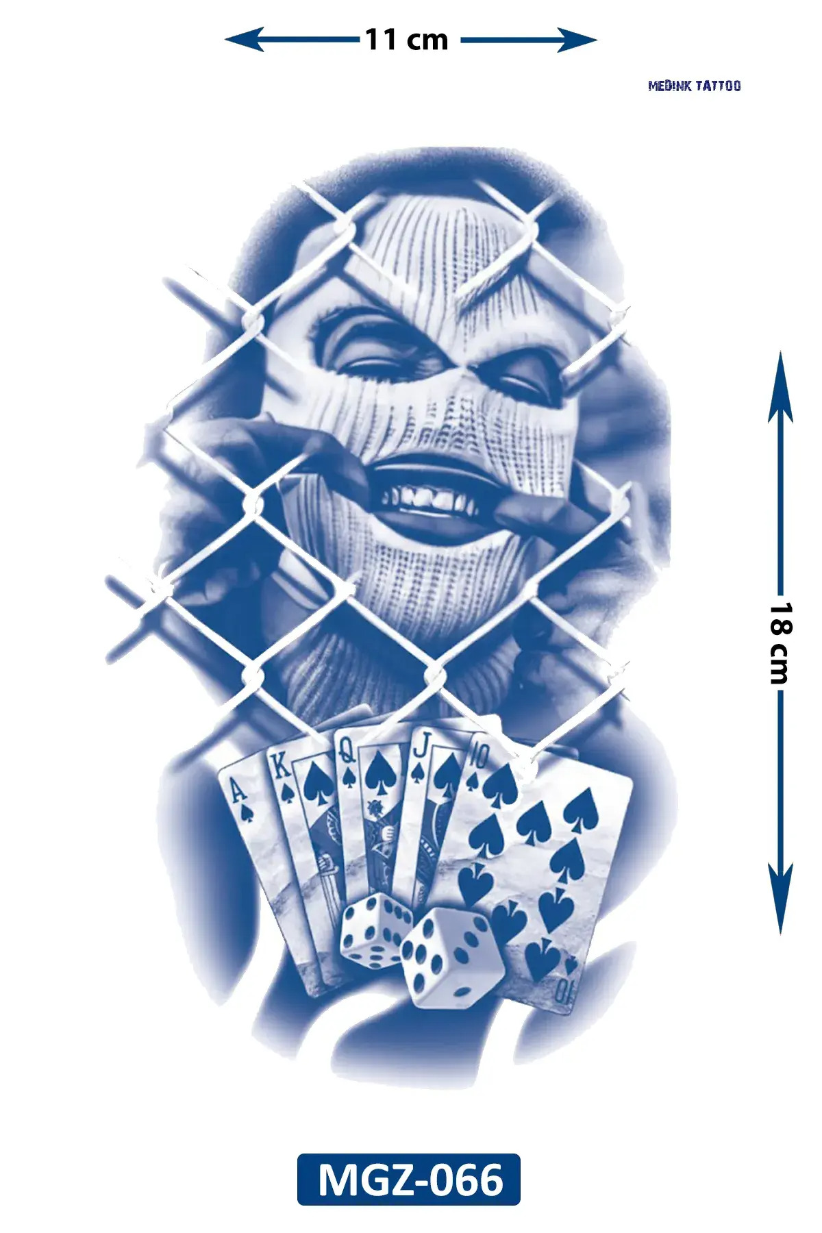 Tattoo 1 Ay Kalıcı 24 Saat Sonra Kararan Gangstar maske model geçici dövme ürünü ucuz fiyat, hızlı kargo imkanı ile hemen sitemizden sipariş verin.