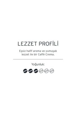 Kadifemsi kremalı yumuşak aroma İçerik: 7 gr x 30 adet Kapsül Kahve Yoğunluk: 6 üzerinden 3 Kullanım Bilgisi: Cafissimo kapsüllü kahve makinelerinde kullanılır.