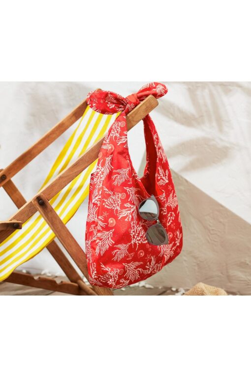 8 kg Geri dönüştürülmüş malzemeden dayanıklı ve silinebilir yüzey malzemeli çanta|Düğümlü, uzunluğu ayarlanabilir taşıma askısı |Küçük ve kompakt şekilde katlanarak iç cepte saklanabilir|Tamamı yazlık mercan deseni baskılı|Plajda bir tatil için mükemmel