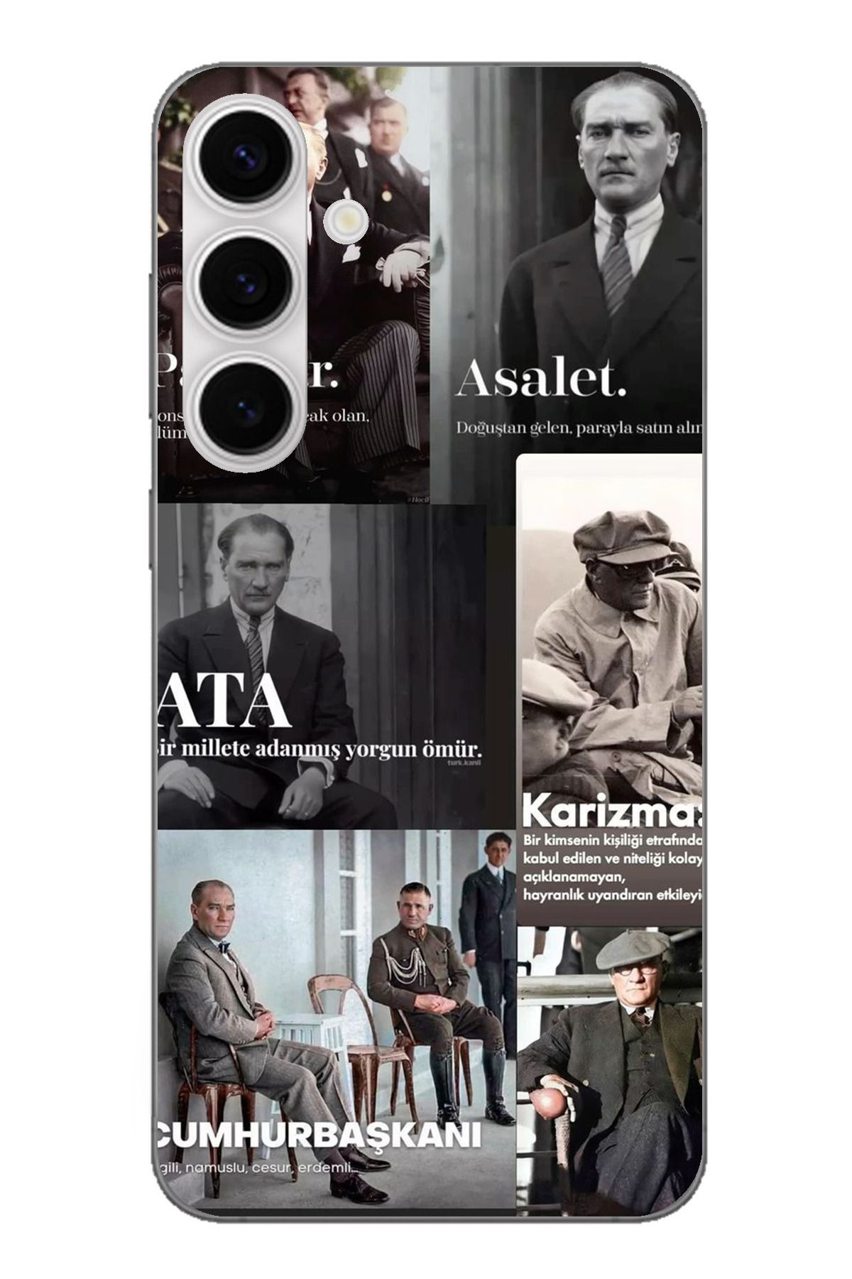 TechTree Samsung Galaxy S24 FE Uyumlu Atatürk Asalet Karizma Şeffaf Silikon Kılıf