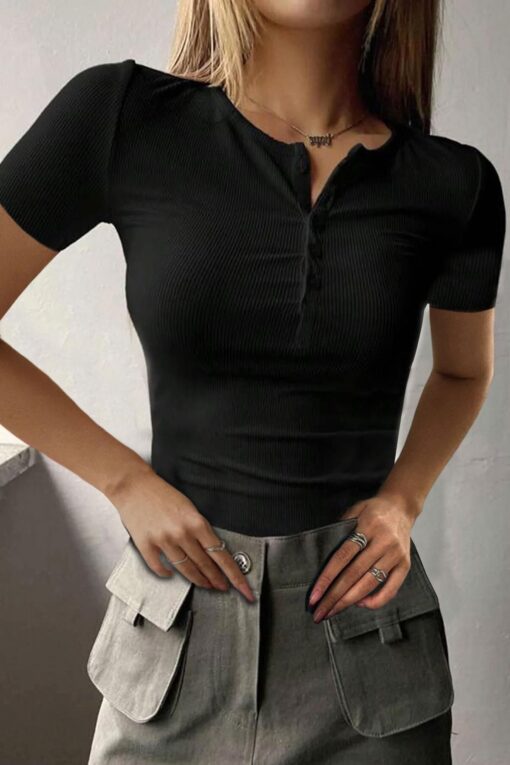 Teenage Millionaire Kadın Siyah Kısa Kollu Patlı Düğmeli Bisiklet Yaka Fitilli Kaşkorse Bluz Body ürünü ucuz fiyat, hızlı kargo ve kredi kartına 12 ay taksit imkanı ile hemen sitemizden sipariş verin.
