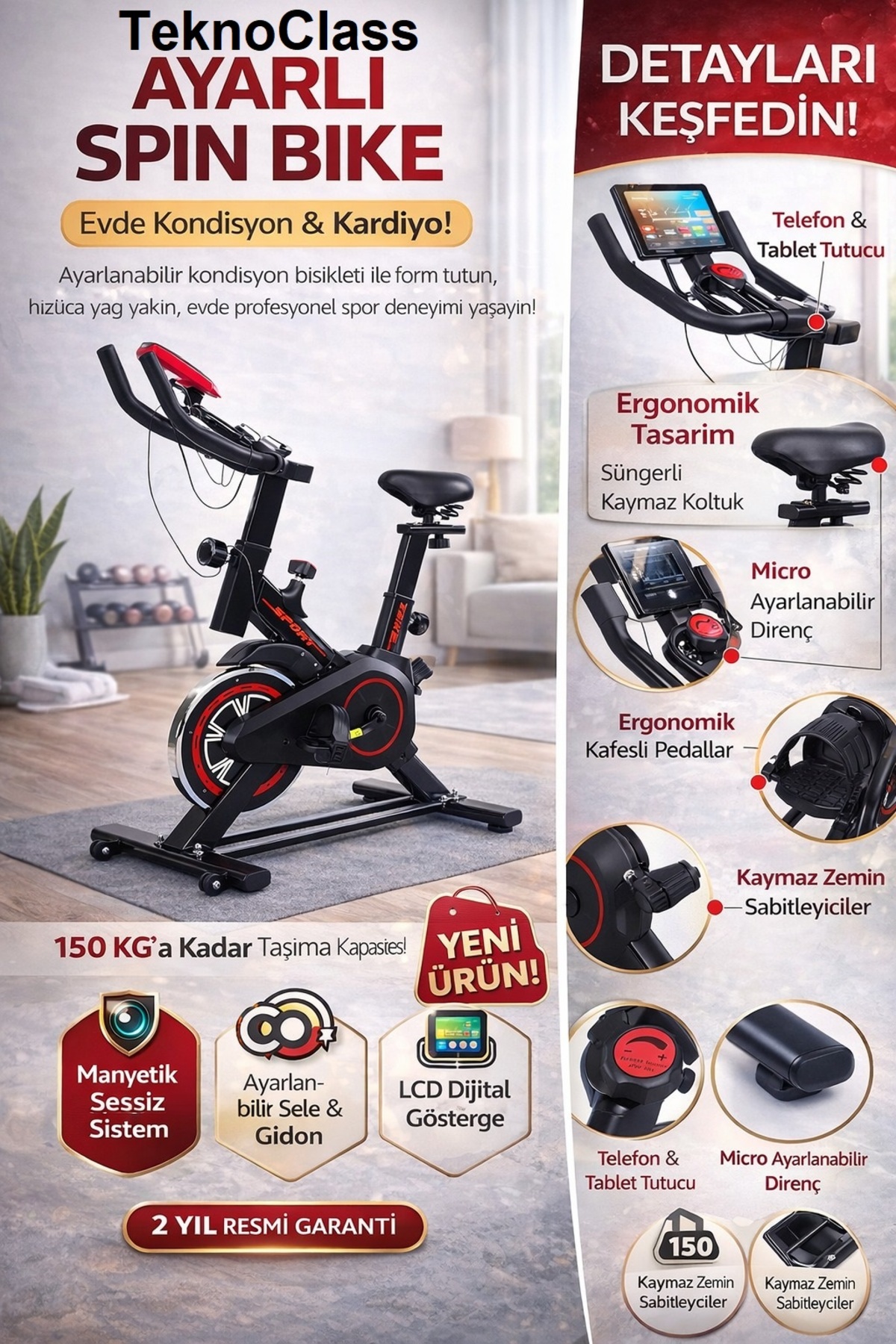 TeknoClass Ayarlı Kondisyon Bisikleti Spor Koşu Egzersiz Bisikleti Spin Bike Dikey Ev Bisikleti TKN-44 ürünü ucuz fiyat, hızlı kargo imkanı ile hemen sitemizden sipariş verin.