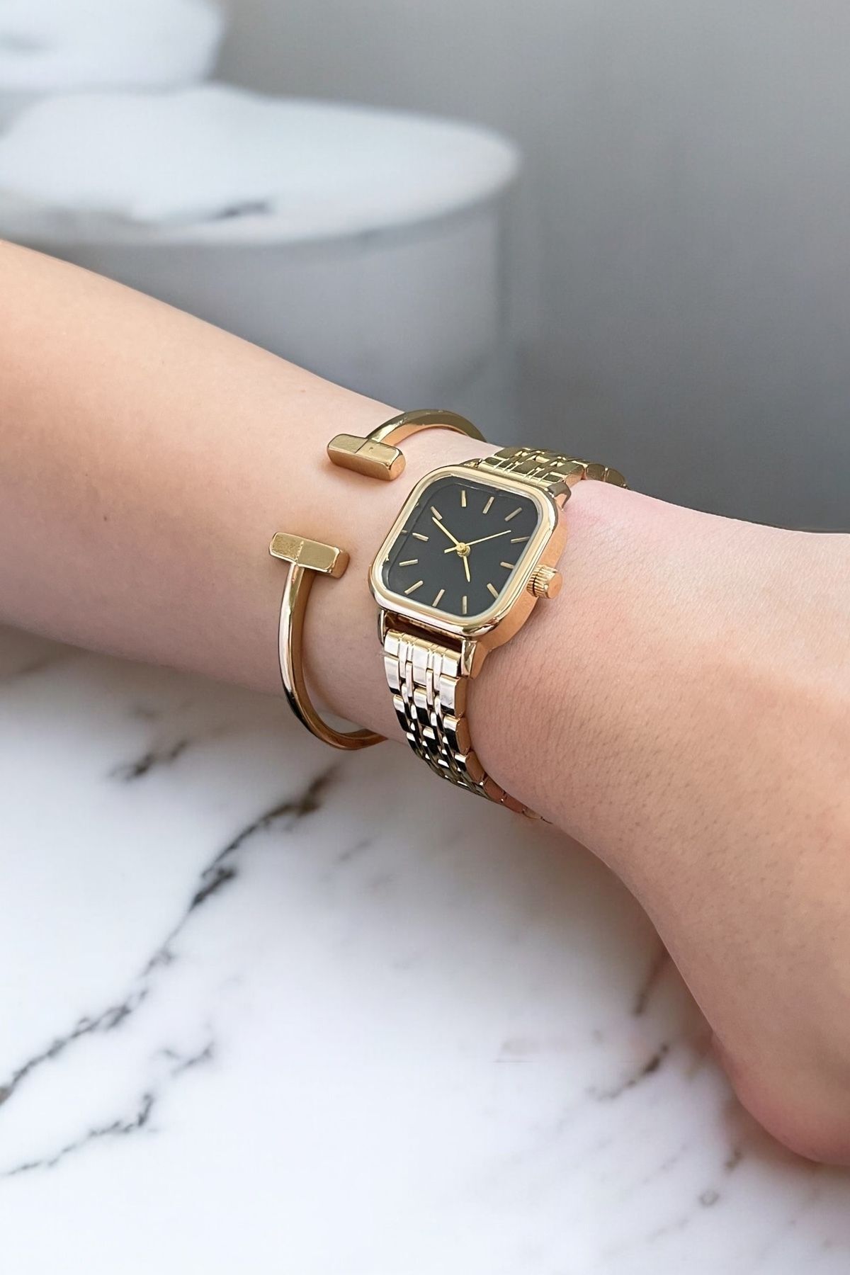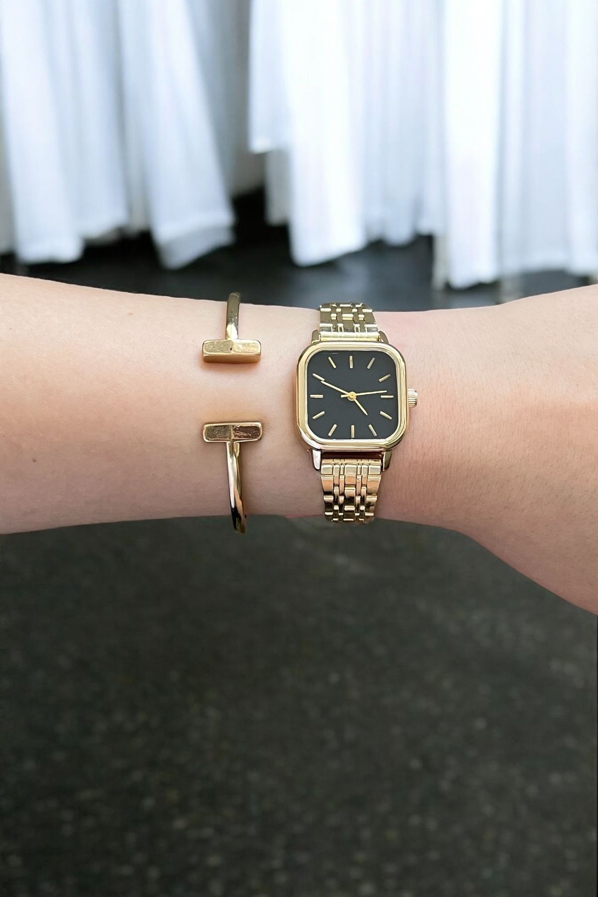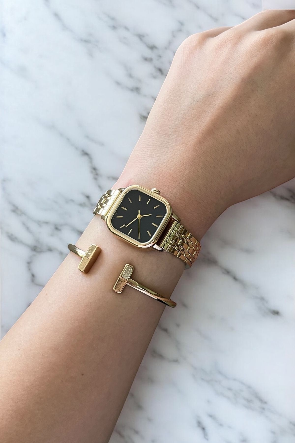 The Berry Kare Kadın Retro Gold Kol Saati Vintage Gold Kadın Saati Kararmaz Bileklikle Beraber