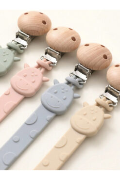 The Cloudish Shop Silikon Emzik Askısı Emzik Tutucu Ahşap Klipsli – Zürafa desen / Pastel Pembe