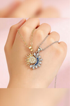 The Collection 2’li Gökyüzü Mavisi Işıltılı Güneş ve Hilal Ay Çift Arkadaşlık Sevgili Kolye