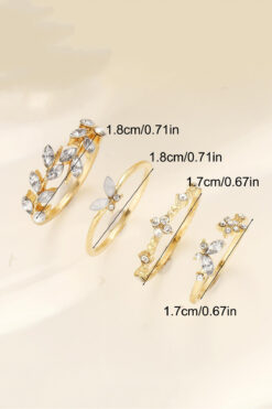 The Collection 4’lü Kombin Kelebek Çiçek Detaylı Eklem Gold Taşlı Yüzük Set