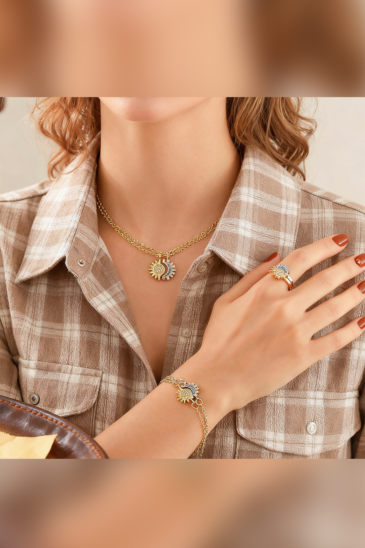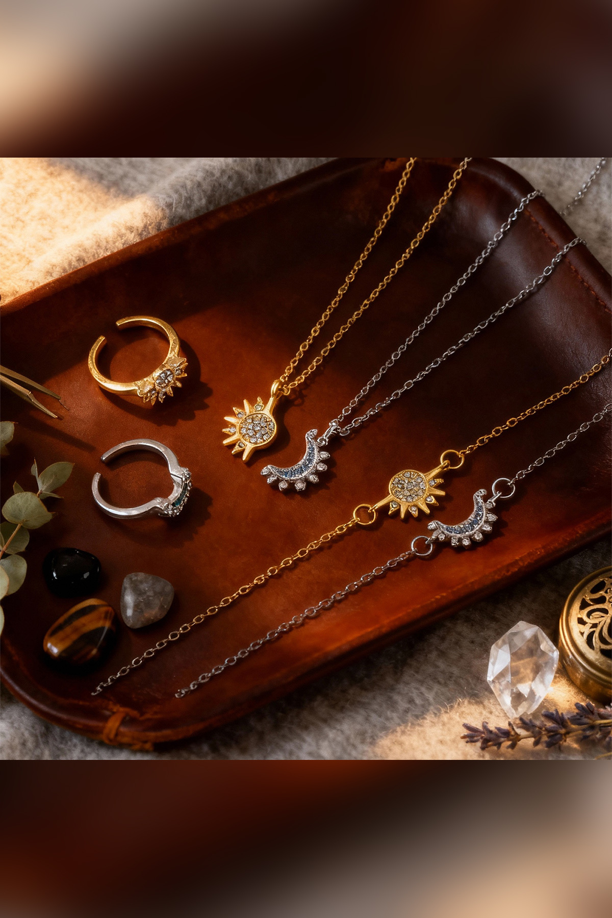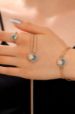 The Collection 6’lı Güneş ve Hilal Ay Arkadaşlık Sevgili Kolye Bileklik ve Yüzük Seti (2 Kolye+2 Bileklik+2 Yüzük)
