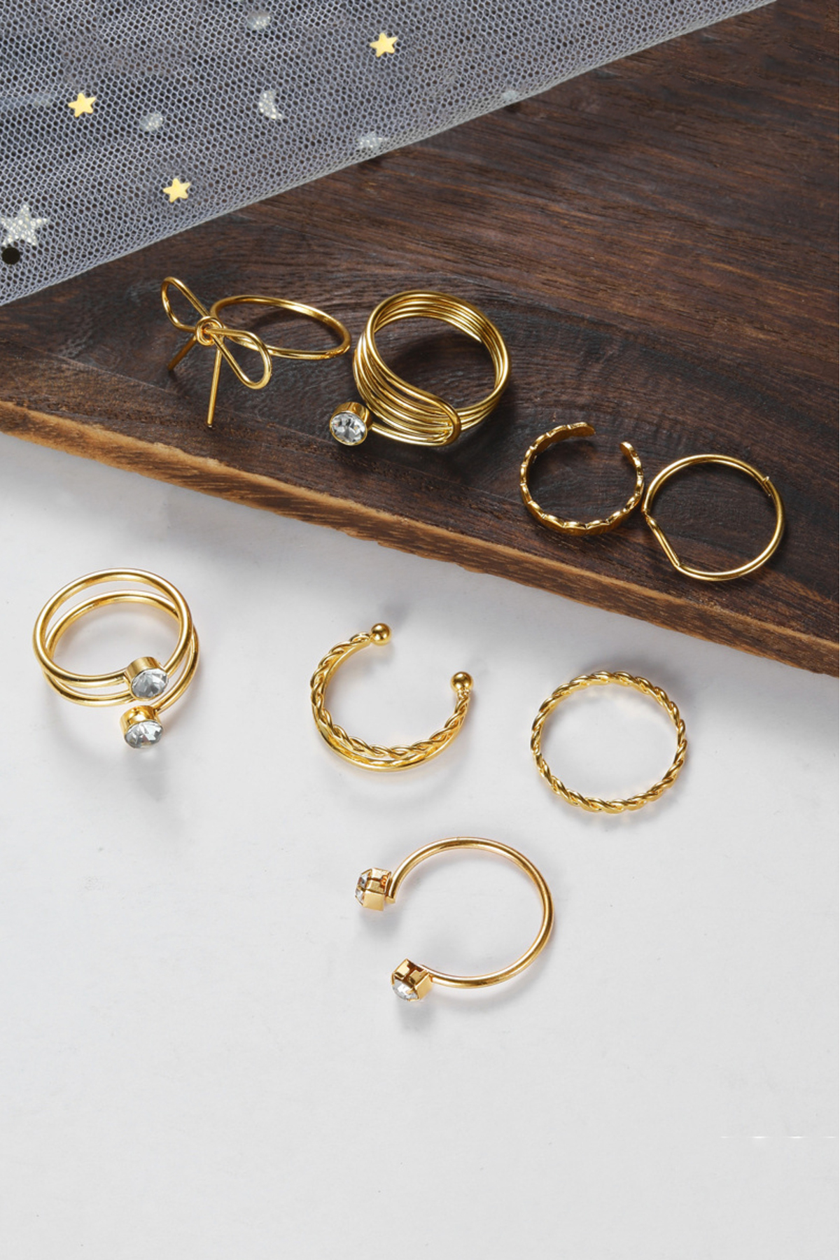 The Collection 8'li Fiyonk Model Kombin Gold Yüzük Set ürününü en uygun fiyata kozmetikara.com sitemizden sipariş verebilirsiniz.