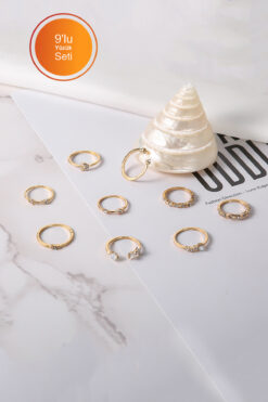 The Collection 9’lu Kombin Eklem Gold Taşlı Yüzük Set