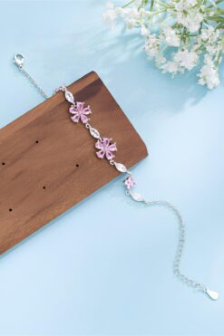 The Collection Cam Kristal Kiraz Çiçeği Bileklik Ayarlanabilir Kadın Bileklik