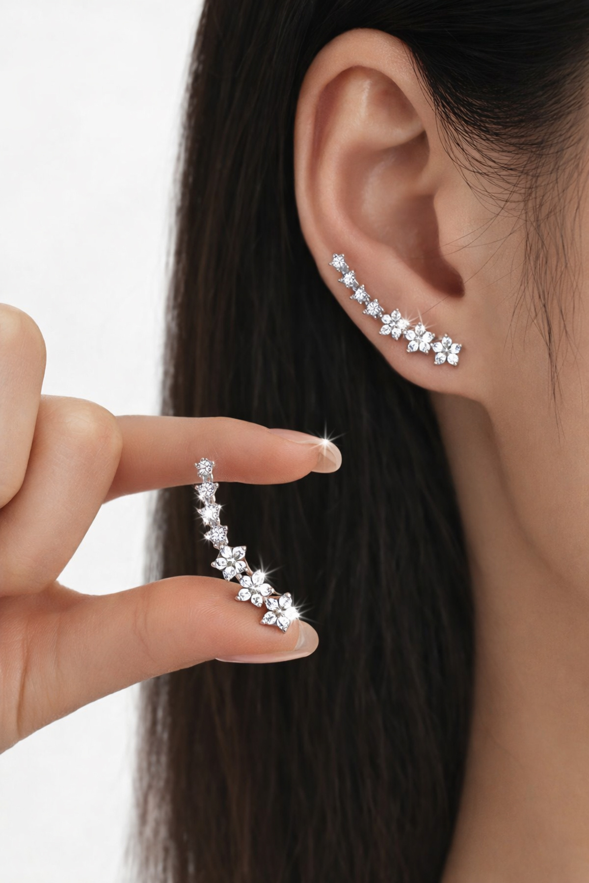 The Collection Kadın Zirkon Taşlı Su Yolu Yıldız Model Ear Climber Gümüş Küpe