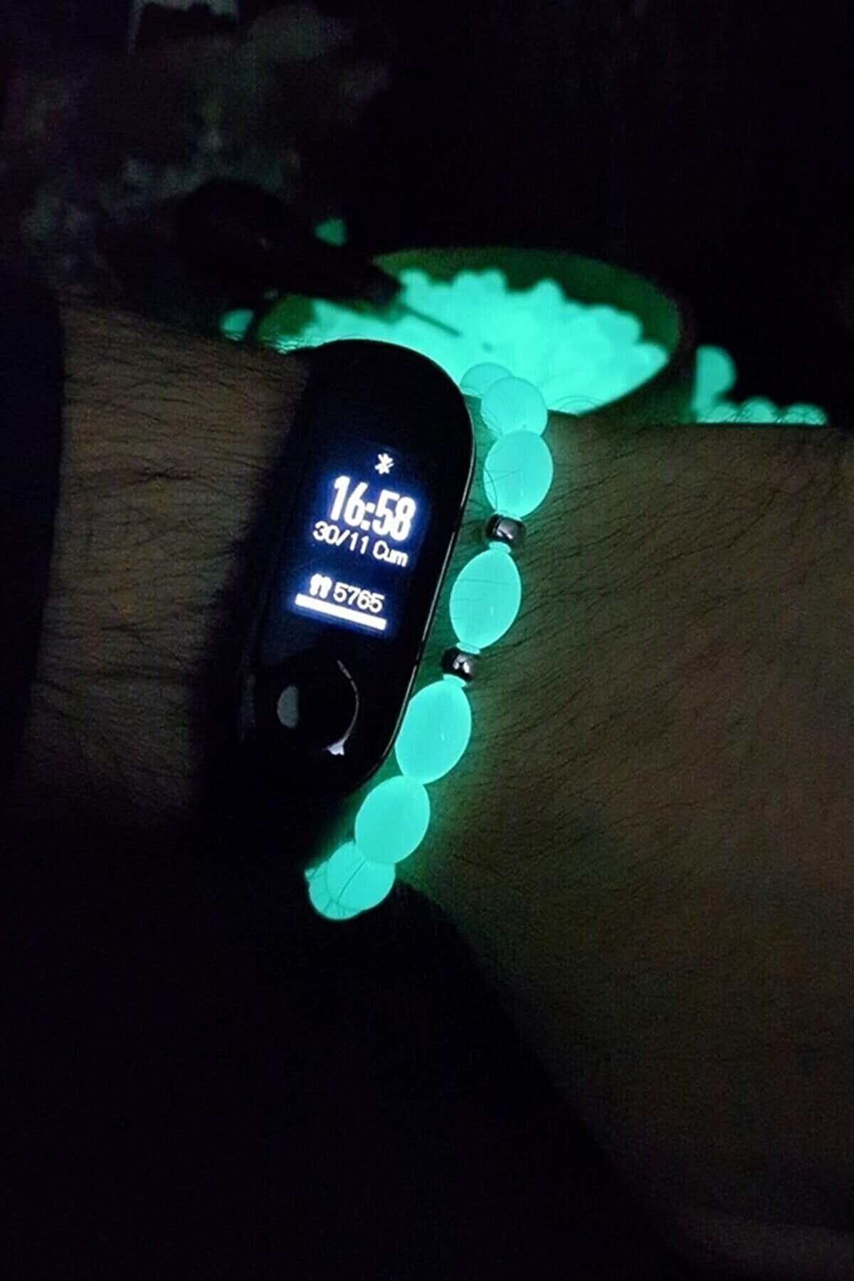 The Collection Karanlıkta Parlayan Yeşil Fosforlu Kedigözü Toz Kehribar Bileklik