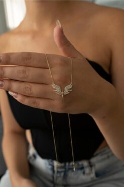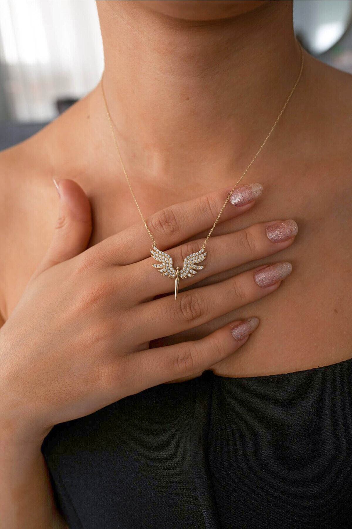 The Collection Mikail Meleği Figürlü Zirkon Taşlı Melek Kanadı Kararmaz Gold Çelik Kolye