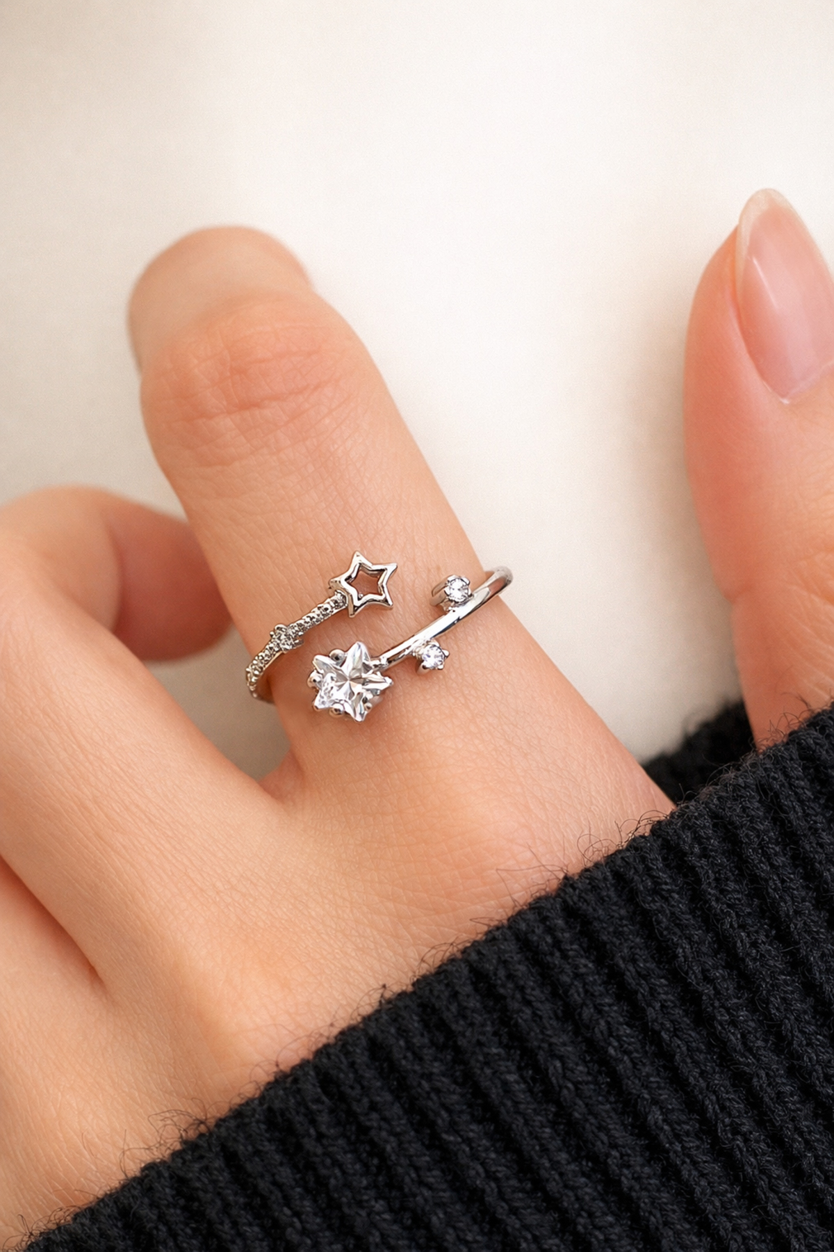 The Collection Minimalist Yıldız Detaylı Zirkon Taş Gümüş Ayarlanabilir Kadın Yüzük ürününü en uygun fiyata kozmetikara.com sitemizden sipariş verebilirsiniz.