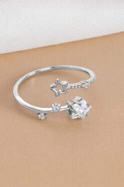 The Collection Minimalist Yıldız Detaylı Zirkon Taş Gümüş Ayarlanabilir Kadın Yüzük