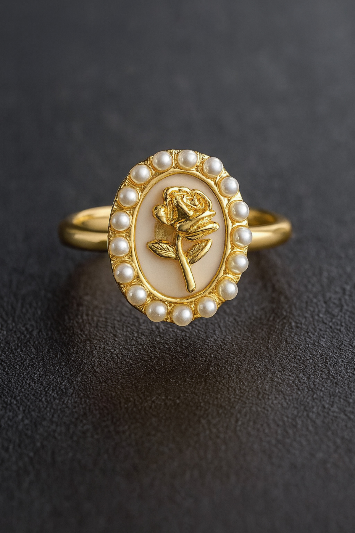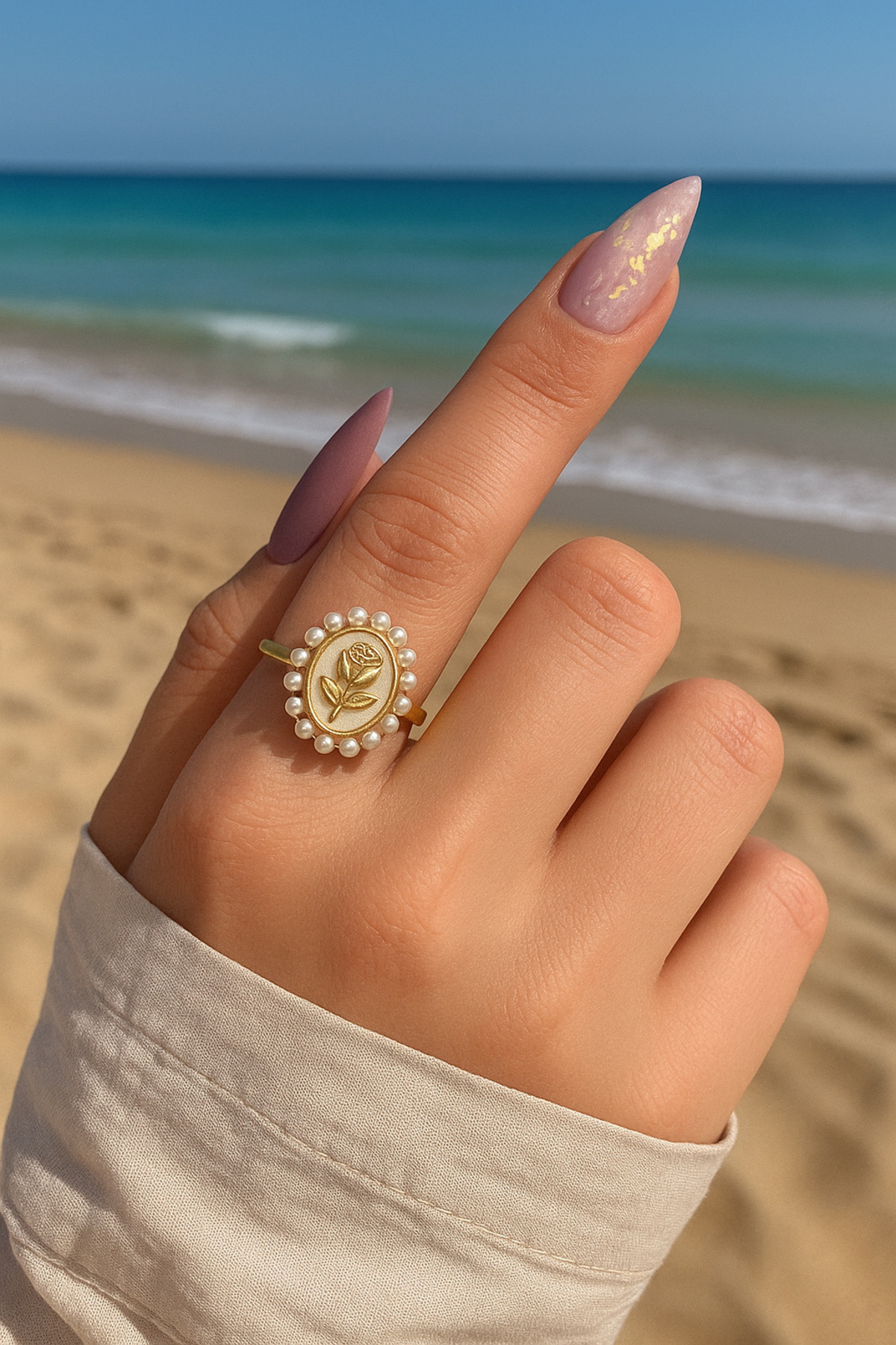 The Collection Rose Pearl Taşlı Gül Porte Model Inci Detay Kadın Vip Yüzük